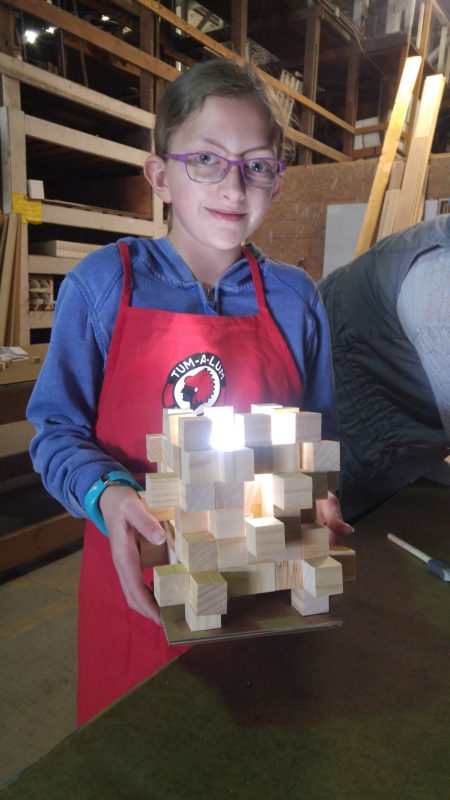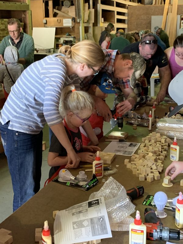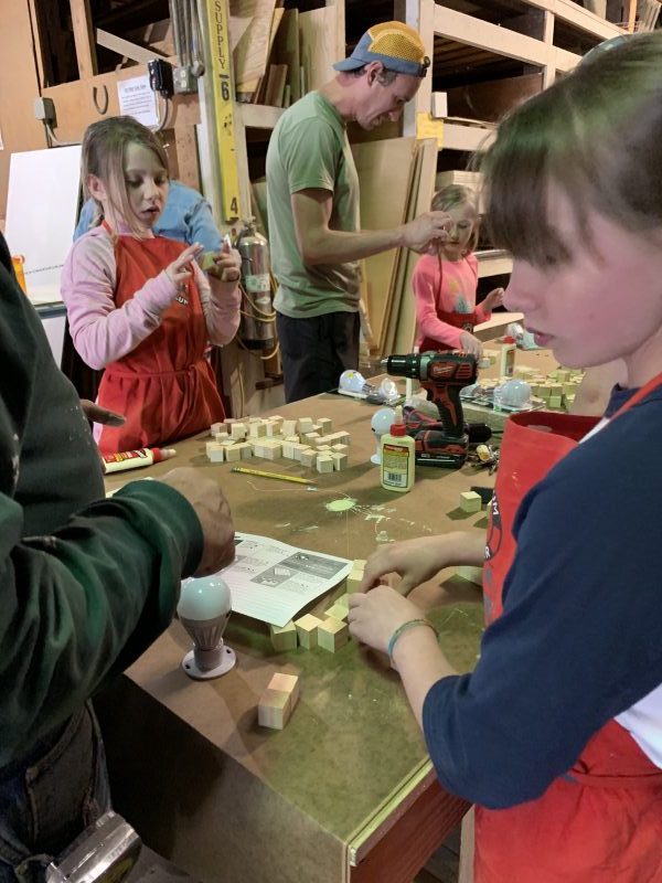 Our first DIY class of 2019! This project was a big hit last year. This block lamp uses a battery-powered LED bulb for long life and ease of building. Taking away the worry of wiring a switch and lamp makes this project great for almost anyone. Did you miss out on the DIY project? You can follow this step-by-step guide to build your own block lamp with your kids!